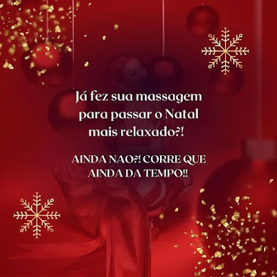 Que tal transformar este Natal em algo realmente especial? 🌟 Esqueça os presentes tradicionais e dê algo que vai fazer toda a diferença: uma autoestima renovada! ✨🎁 Oferecemos uma variedade de massagem relaxante, tudo para proporcionar uma experiência única e marcante. Não há presente mais valioso do que cuidar de quem a gente ama, e aqui, cuidamos de você de maneira única e especial. Faça deste Natal um momento de transformação e carinho. Presenteie com bem-estar e autoconfiança. .